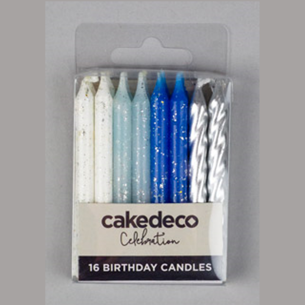 Blue & Silver Glitter Spiral Candles- 16 pack