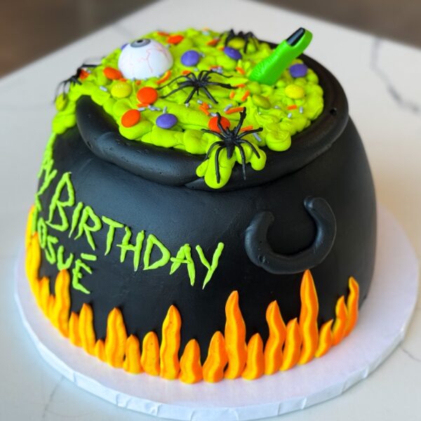 Toppings: Buttercream, M&Ms, and plastic spiders, fingers, and eyeballs.