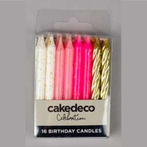 Pink & Gold Glitter Spiral Candles- 16 pack